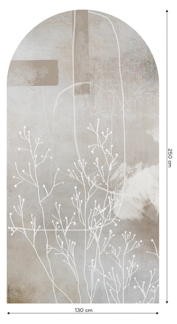 Tapetene er designet som buede former med målene 130 cm bredde og 250 cm høyde.