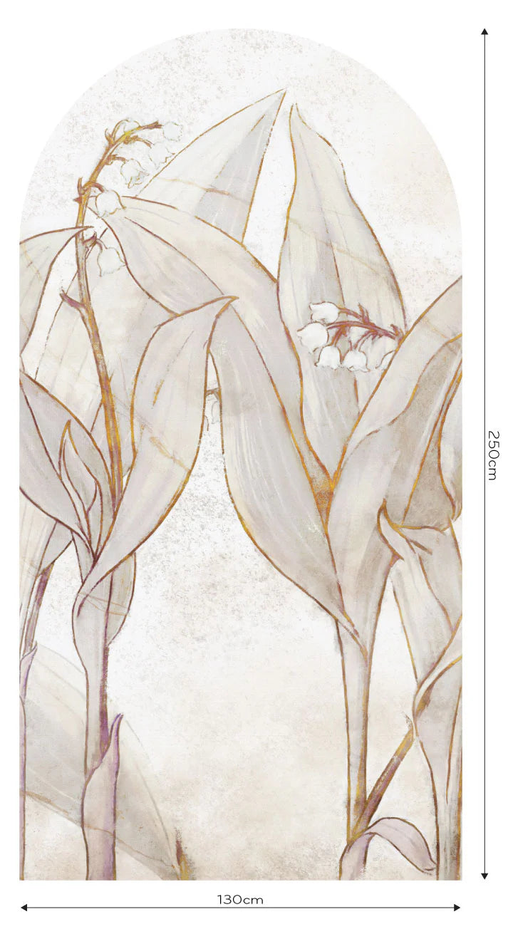 Tapetene er designet som buede former med målene 130 cm bredde og 250 cm høyde.
