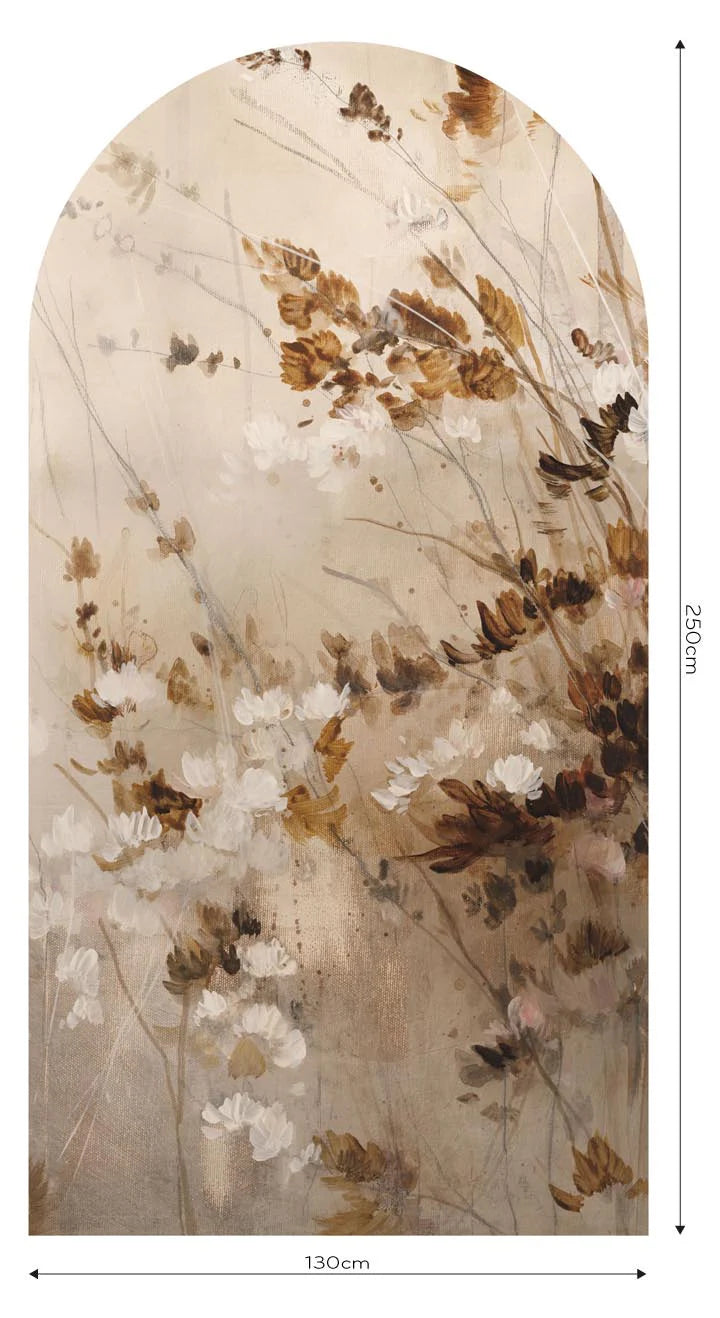 Tapetene er designet som buede former med målene 130 cm bredde og 250 cm høyde.