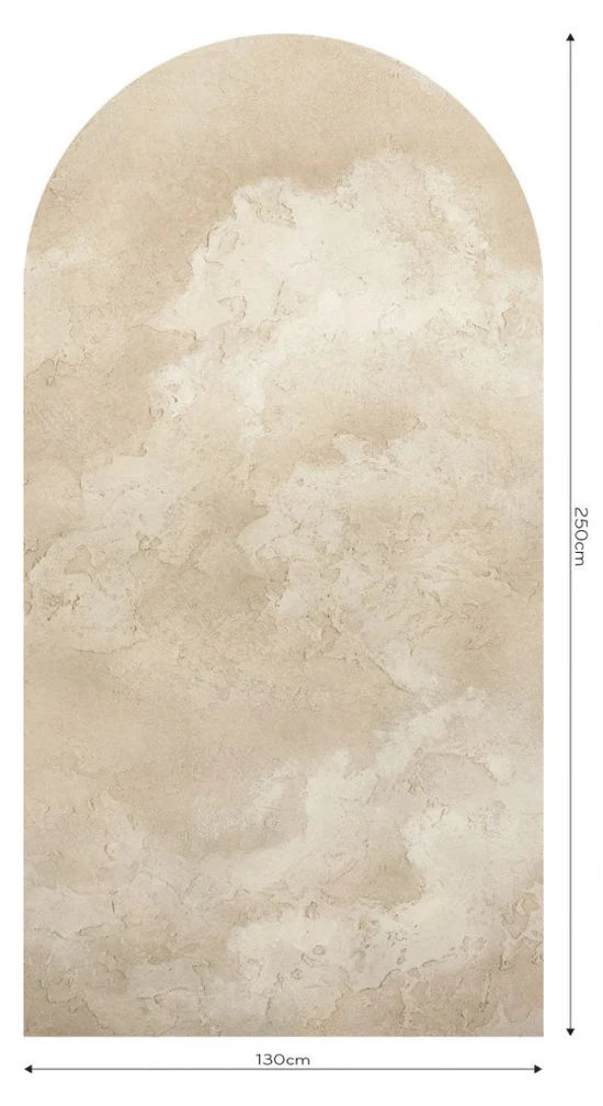 Tapetene er designet som buede former med målene 130 cm bredde og 250 cm høyde.