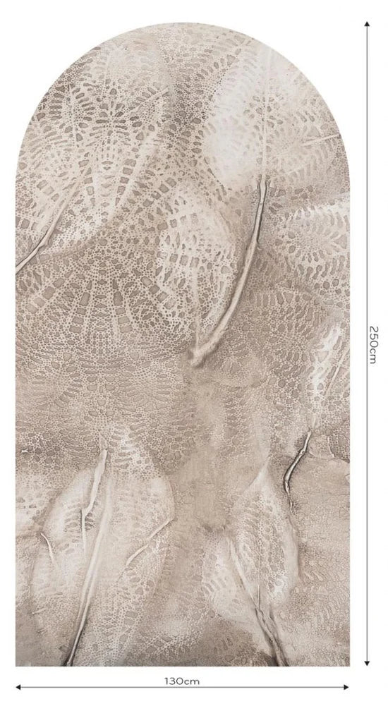 Tapetene er designet som buede former med målene 130 cm bredde og 250 cm høyde.